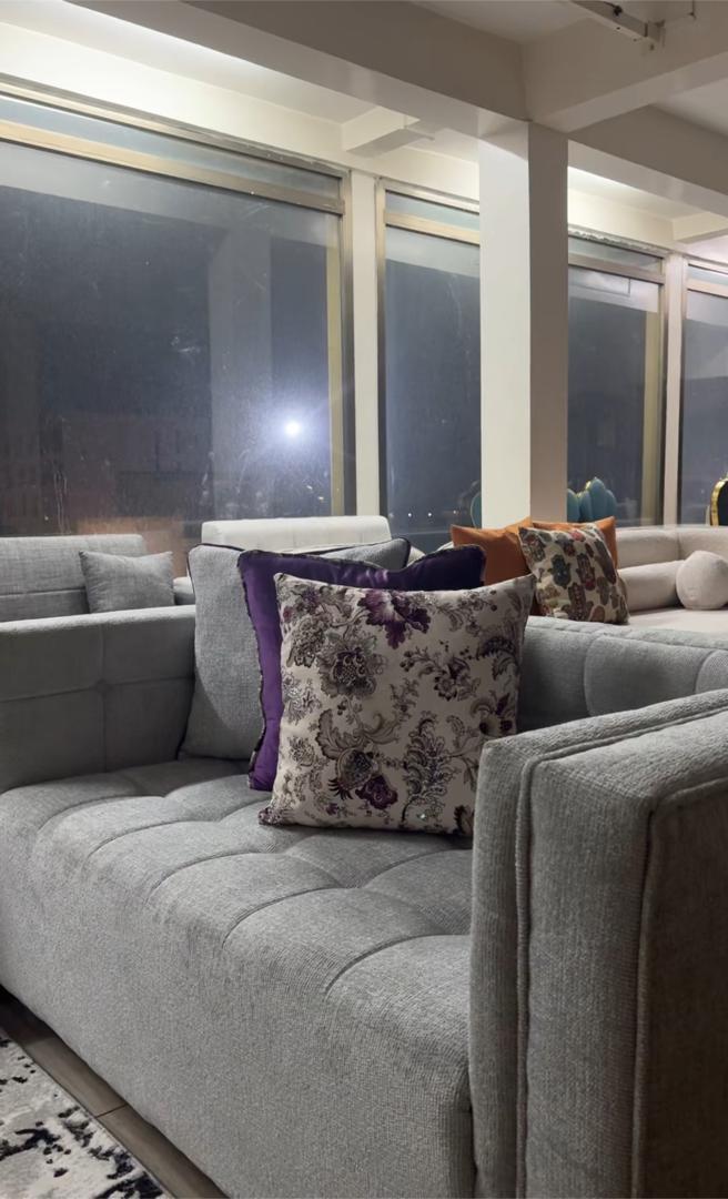 Donnez du style et du confort à votre intérieur avec ce salon contemporain au design élégant. Son tissu gris sobre et raffiné s’adapte facilement à tous les styles de décoration, tandis que les coussins décoratifs aux motifs floraux et unis violets apportent une touche de charme et de modernité.