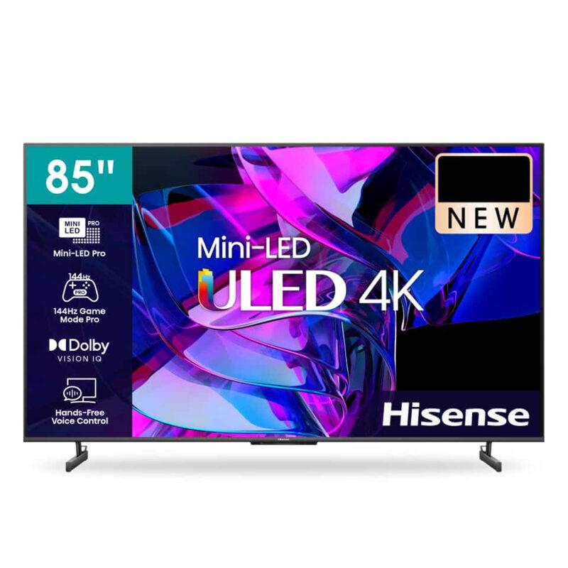 Téléviseur ULED 4K Hisense 85U7H Quantum 120 Hz Gradation locale à matrice complète Pro Couleur du point quantique Ultra-Mouvement 120 Hz Dolby Vision IQ HDR 10+ adaptatif Mode de jeu Pro Télécommande vocale mains libres Zone d’affichage active, dimension horizontale1872mm Zone d’affichage active, dimension verticale1053mm Taille de l’écran (arrondie à l’entier le plus proche)214,78 Taille de l’écran (arrondie à l’entier le plus proche)214,78 cm pouces Technologie d’affichageLCD/LED allumé Source de rétroéclairageLED directe Résolution (Horiz x Vert)3840X2160 Rayon de courbure de l’écran- Profondeur de couleur8 bits + FRC Fréquence de rafraîchissement de l’image120 Hz Taux de mouvement fluide240 Image 3D- Luminosité typique du blanc (cd/m2)400 Rapport de contraste natif4000 : 1